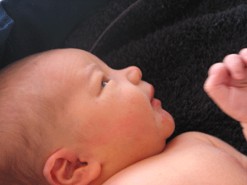 Sometime near dawn this morning, you gulped too much air and developed such a hearty case of the hiccups, the bed shook. I remembered you as an inside-baby, when your hics could send little earthquakes through my entire frame. I am still in awe of the you here with me, knowing you are the same you who floated and fluttered inside me all those months. When I run my finger down the string of beads making up your spine, I cannot believe I grew you. Flesh and bone, brain and body. You sprouted from that tiny germinated seed, and grew into you. Our Bug. Our son.