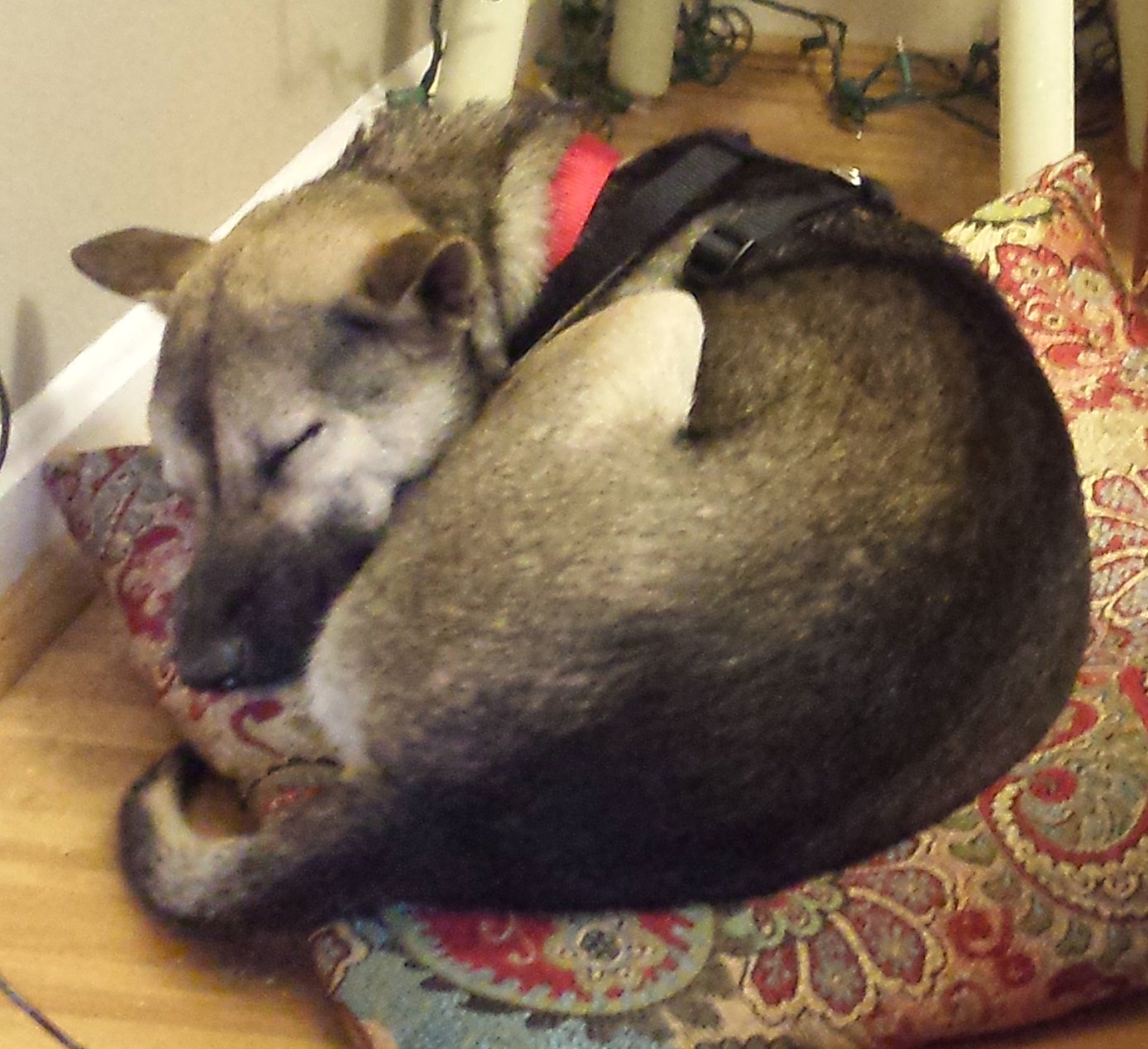 One question concerns me: Was she was someone’s family pet before the smugglers took her? It’s likely. She climbs up onto any willing lap and folds her flanks into the knobs of her knees, tucking her nose under her tail. She burrows like a deer into this nest of her own bristle and bone. She stays, riding the chop even when the lap belongs to a shouting Pictionary player who is trying in vain to sketch a triceratops before the timer runs out.